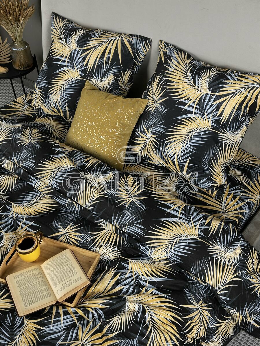 Постельное белье 1.5 спальное / Комплект постельного белья 1,5-спальный Galtex Комфорт Тропикана черный