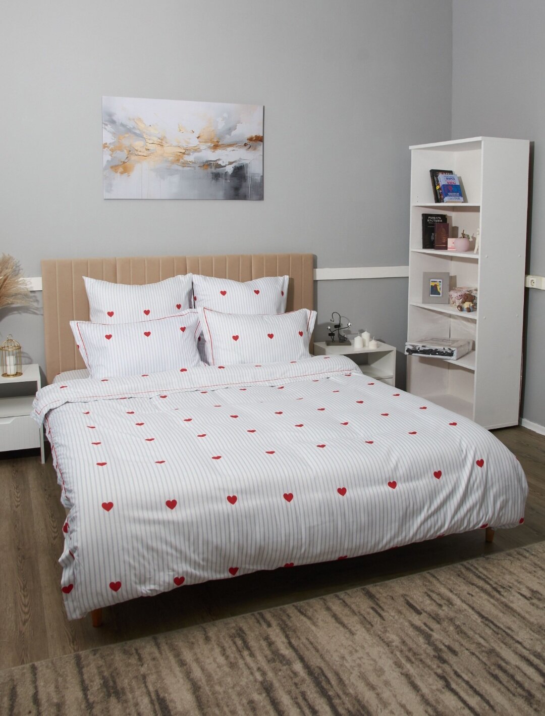 Постельное белье Alanna Comfort, 1,5 спальное, Бархатный сатин, Нежная любовь - сердечки
