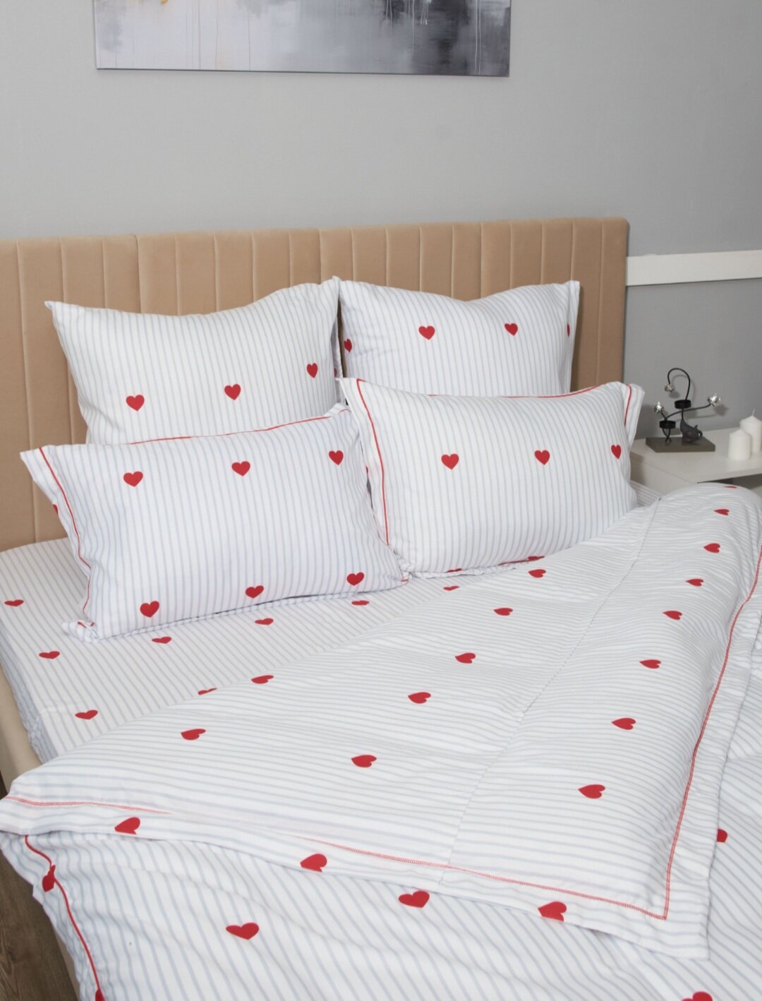 Постельное белье Alanna, 1.5 спальное, Бархатный сатин, Сердечки на красном 14 февраля