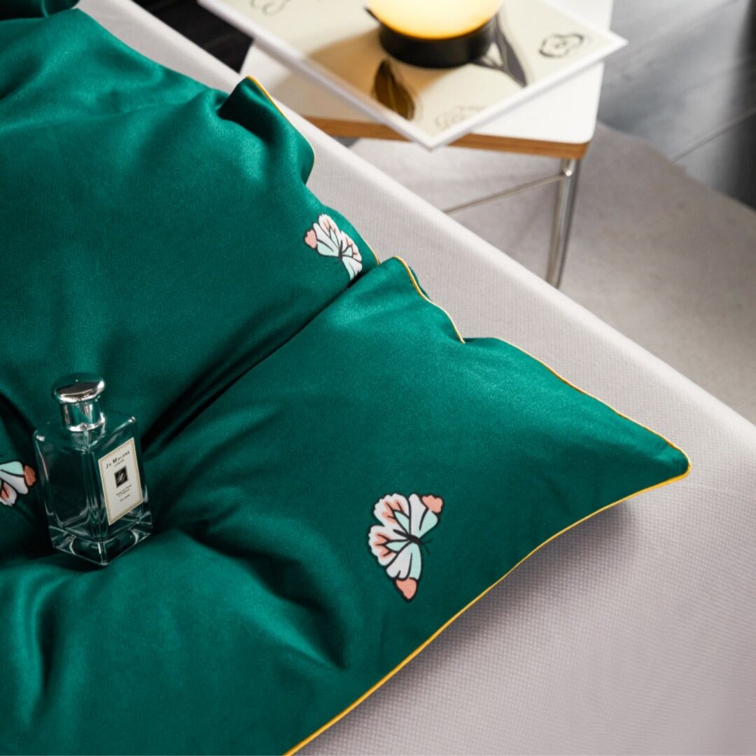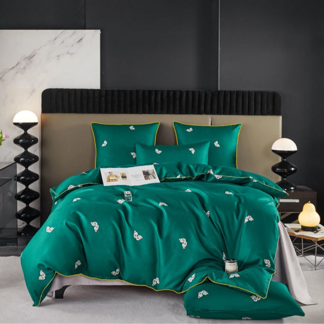 СохранитьПостельное белье Alanna, 2 спальное, Бархатный сатин, Бабочки на зеленом интересное: