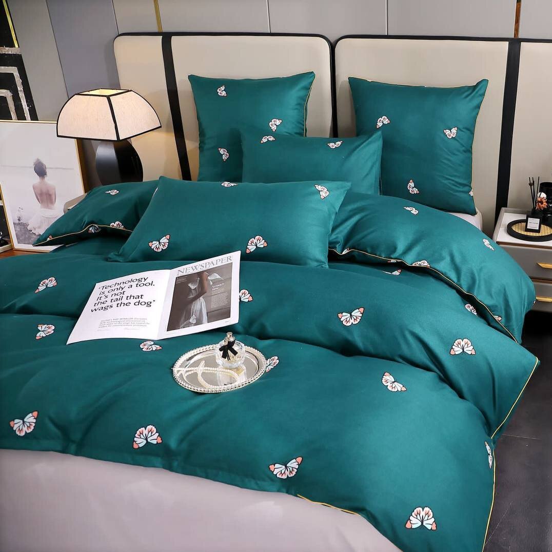 СохранитьПостельное белье Alanna, Семейный комплект, Бархатный сатин, Бабочки на зеленом интересное: