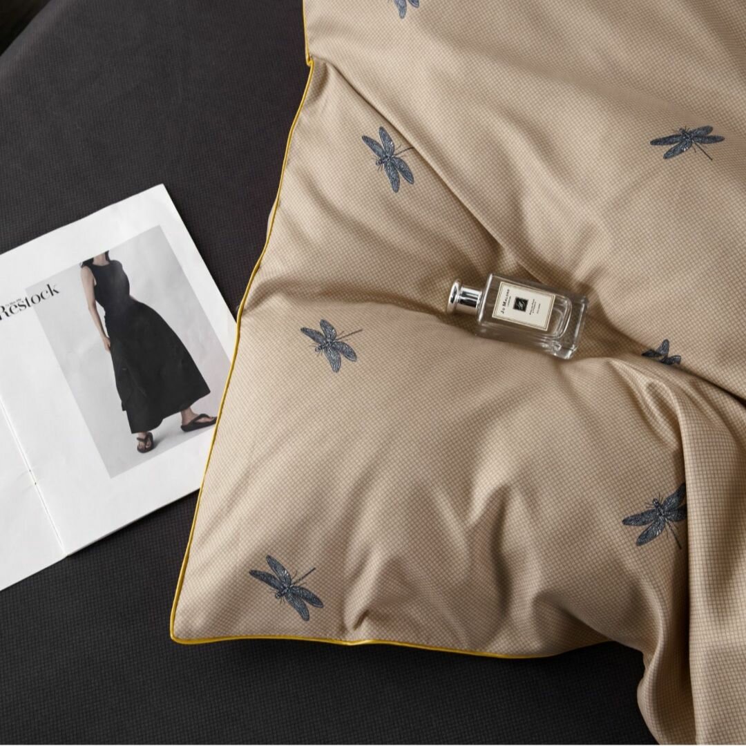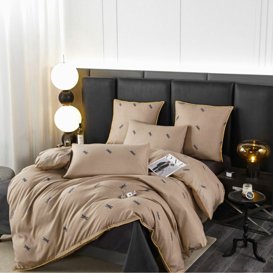 СохранитьПостельное белье Alanna, 1.5 спальное, Бархатный сатин, Стрекозы на бежевом интересное: