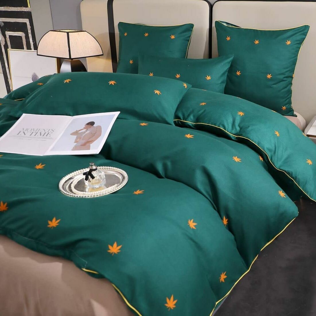 Постельное белье Alanna, Семейный комплект, Бархатный сатин, Изумрудная листва