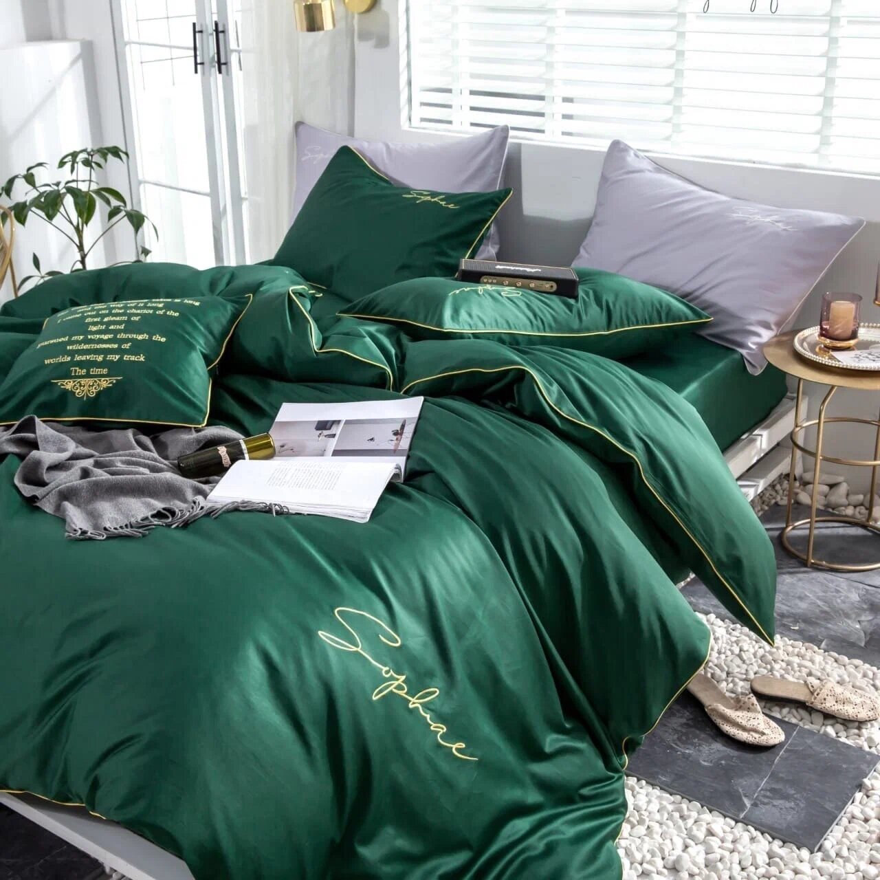 Комплект постельного белья Mency 2 спальный, Сатин, Зеленый