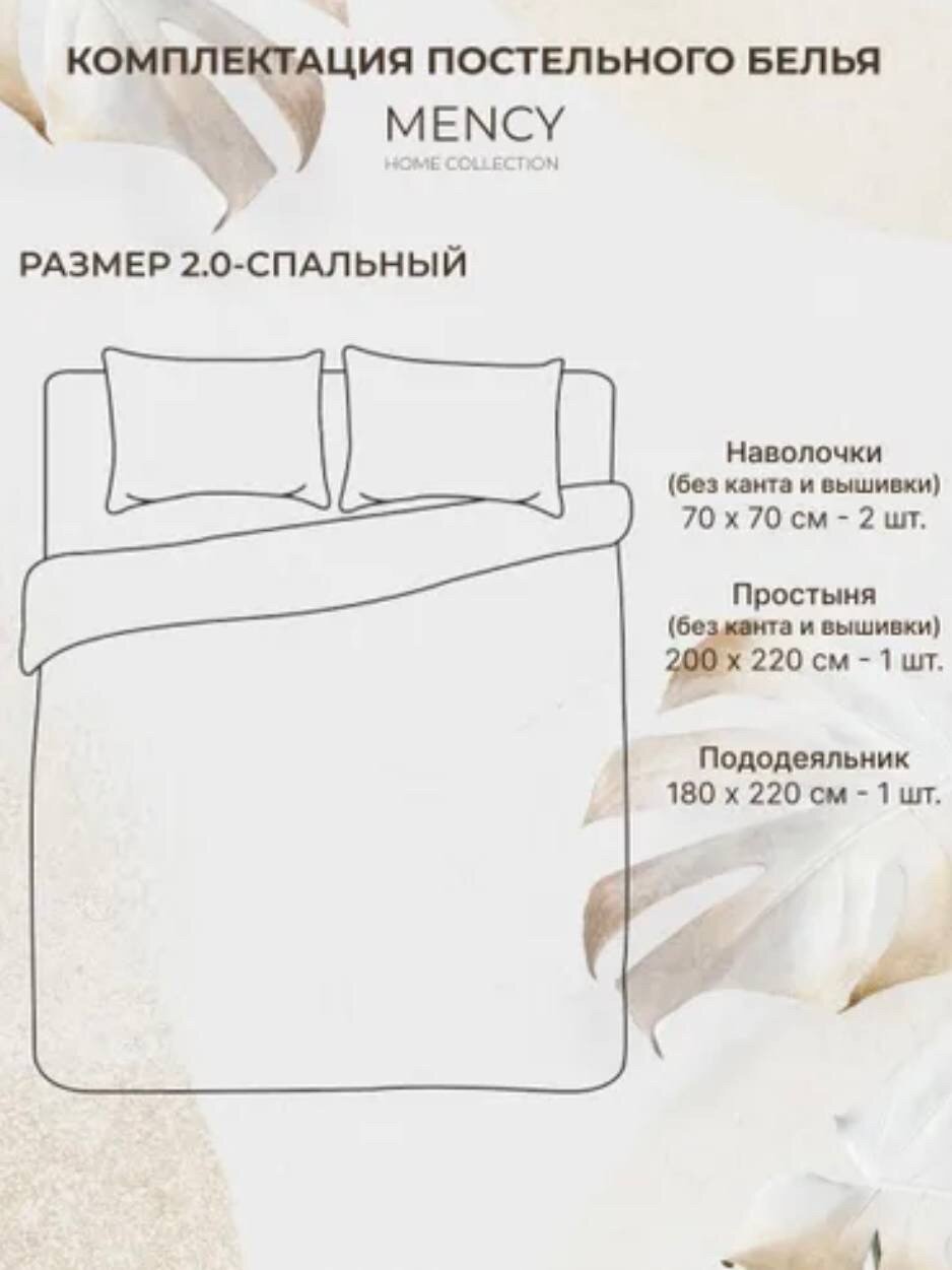 Постельное белье двуспальное / евро / 2-х спальное / Mency / Сатин, Жатка / простыня 220x240/ пододеяльник 200x220/ 4 Наволочки 50x70-2, 70x70-2