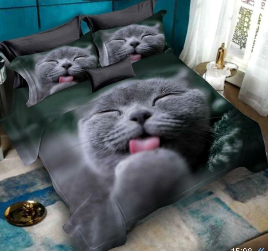 Купить Комплект Постельного Белья Евро Кошка с Языком / Евро / Простыня 220x240 / Пододеяльник 200x200 / Наволочки 70x70-2