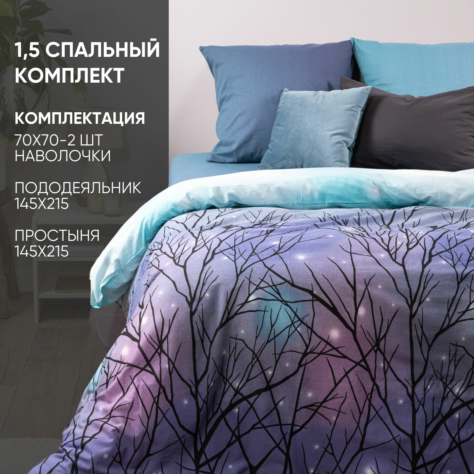 Купить Постельное белье 1 5 спальное, наволочки 70х70 Ночь Нежна Черная птица, 100% хлопок, ткань поплин