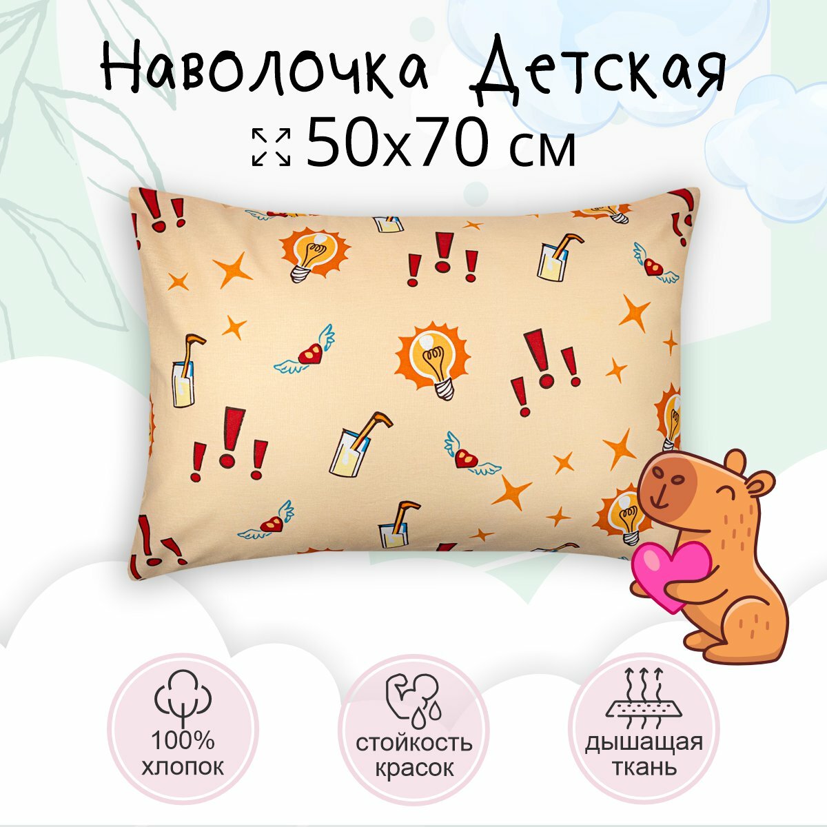 Наволочка 70*70 TEO kids Капибара/для детей/хлопок/ 1 шт