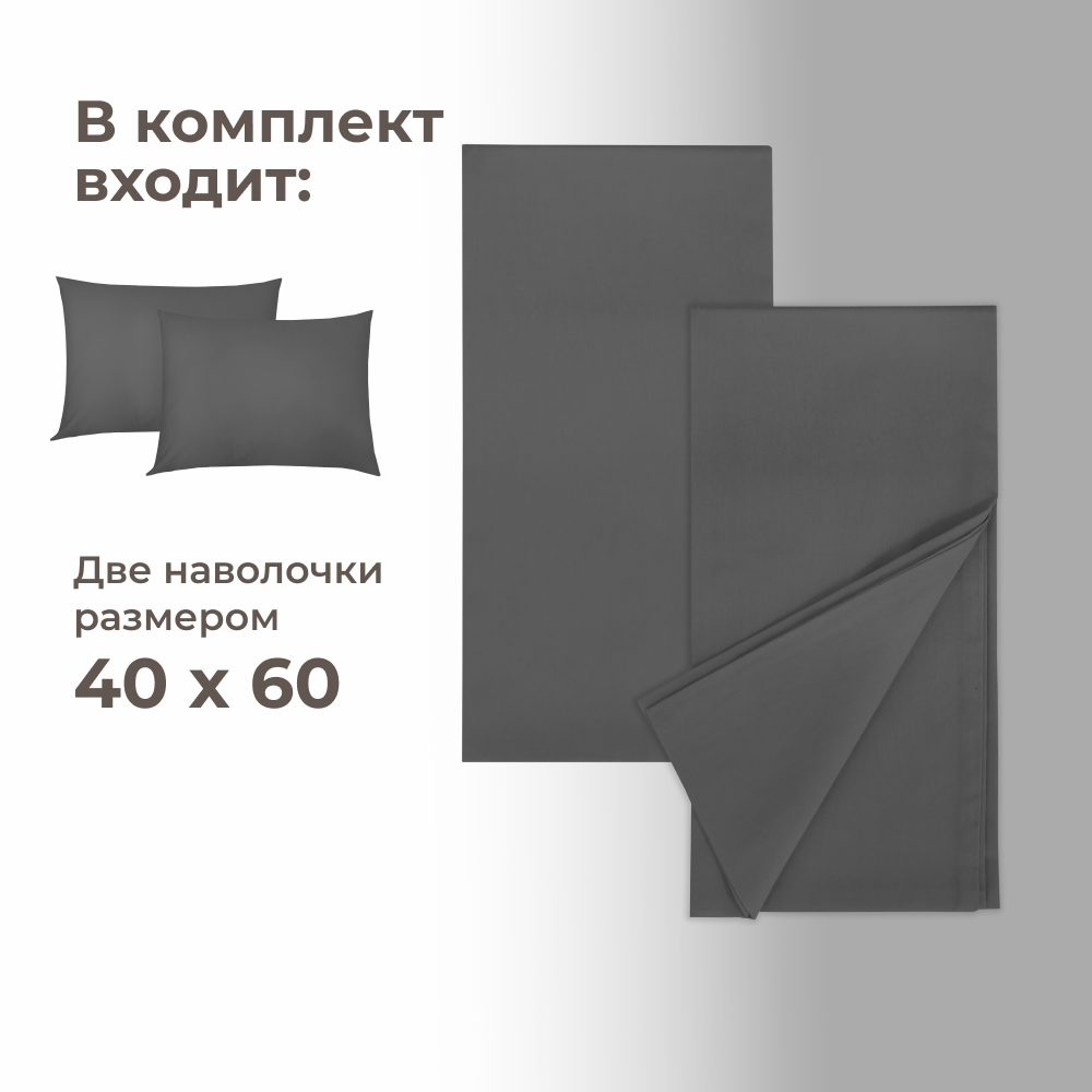Купить Набор наволочек Lisleep 40x60 см, 2шт, сатин (хлопок), графит