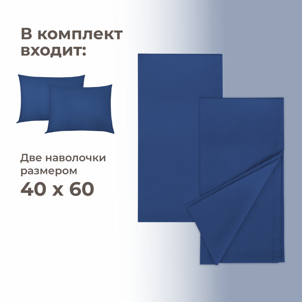 Набор наволочек Lisleep 50x70 см, 2шт, сатин (хлопок), синий