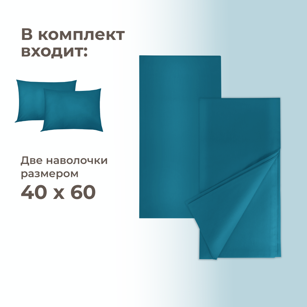 Набор наволочек Lisleep 40x60 см, 2шт, сатин (хлопок), бирюзовый
