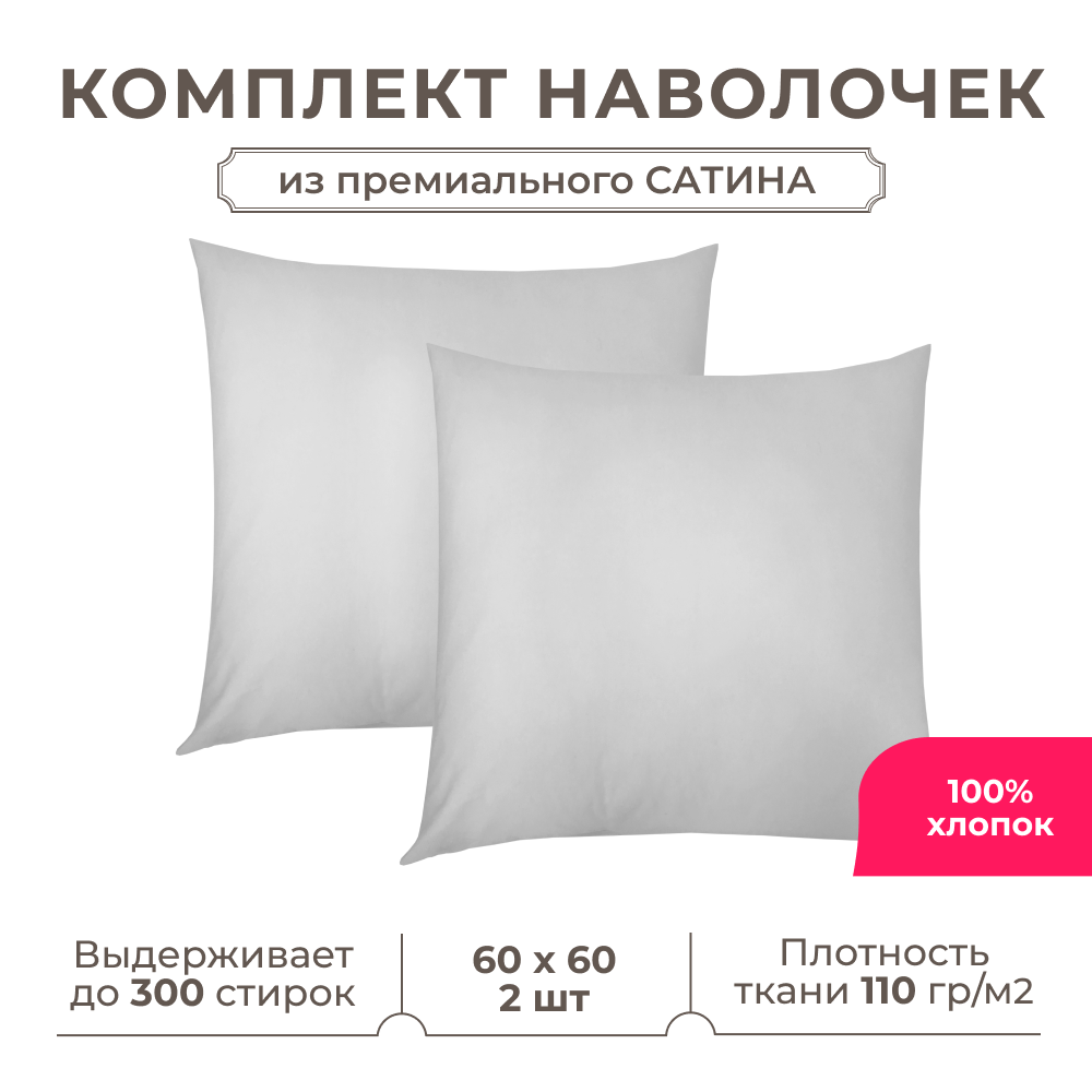 Набор наволочек Lisleep 60x60 см, 2шт, сатин (хлопок), белый