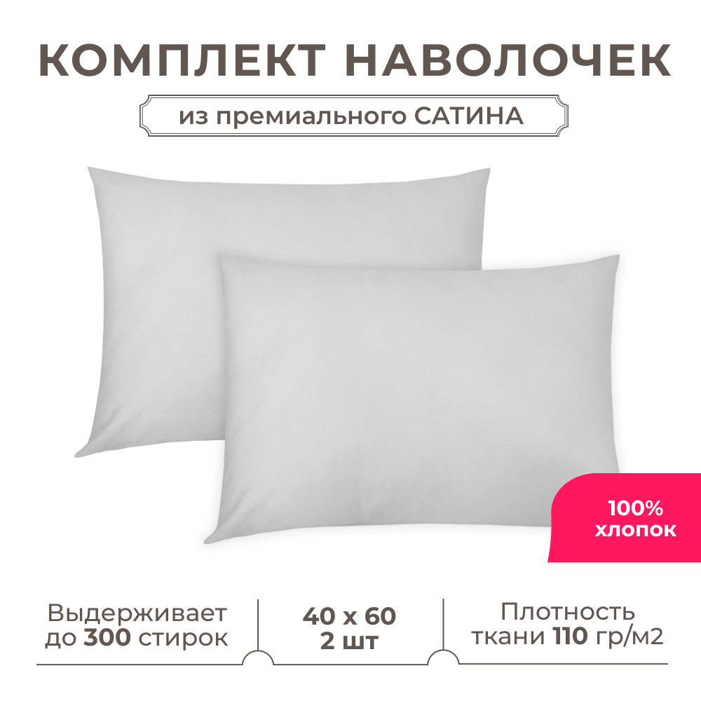 Набор наволочек Lisleep 40x60 см, 2шт, сатин (хлопок), белый