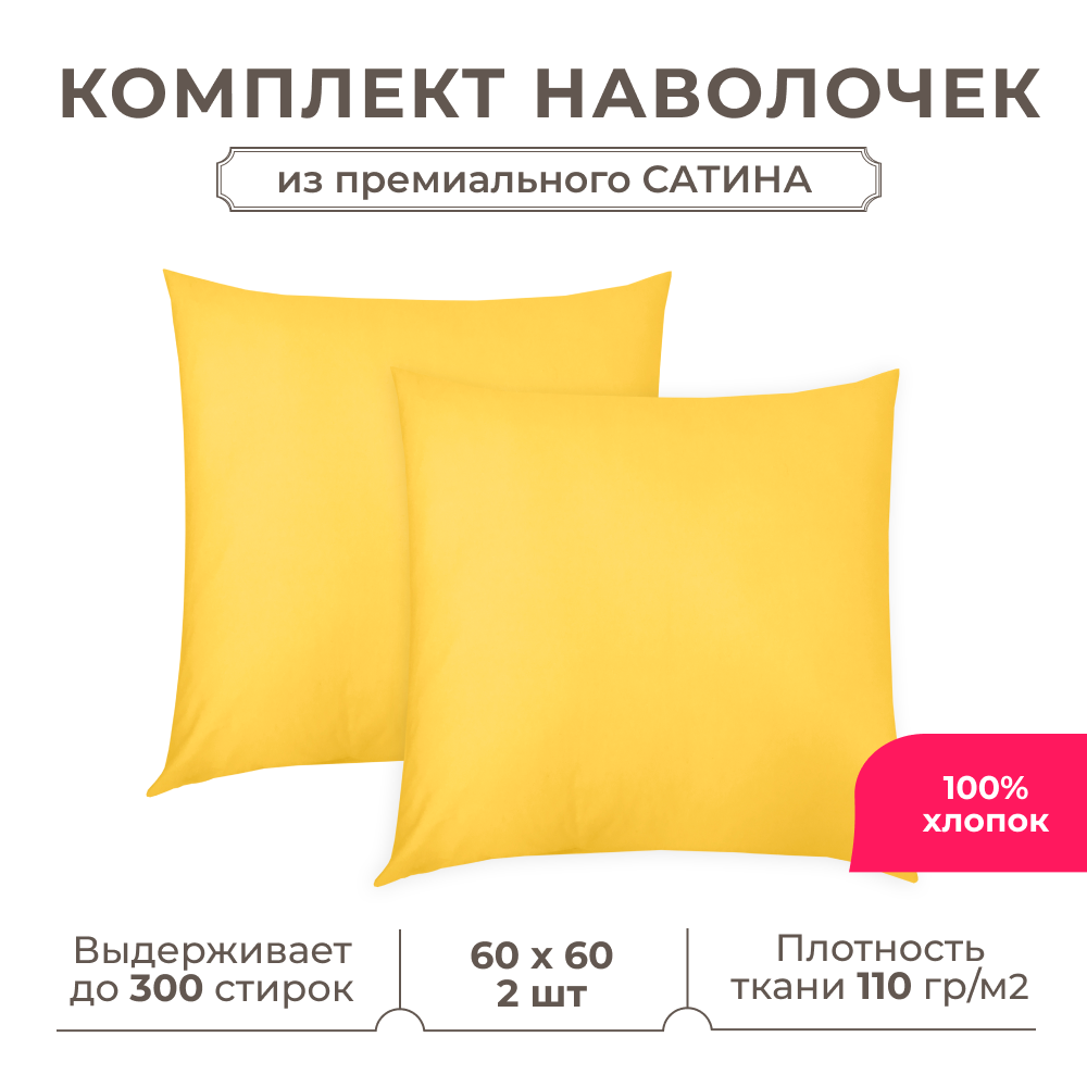 Купить Набор наволочек Lisleep 60x60 см, 2шт, сатин (хлопок), желтый