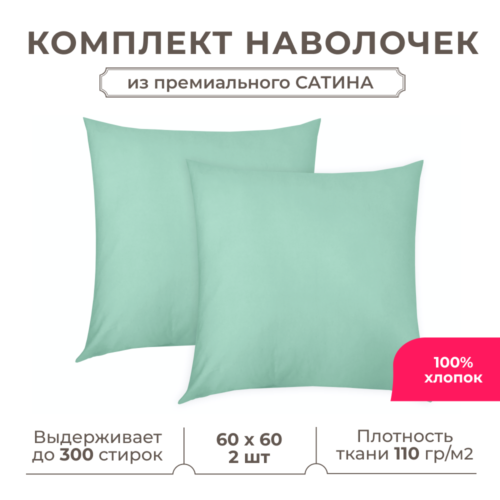 Купить Набор наволочек Lisleep 60x60 см, 2шт, сатин (хлопок), бирюзовый