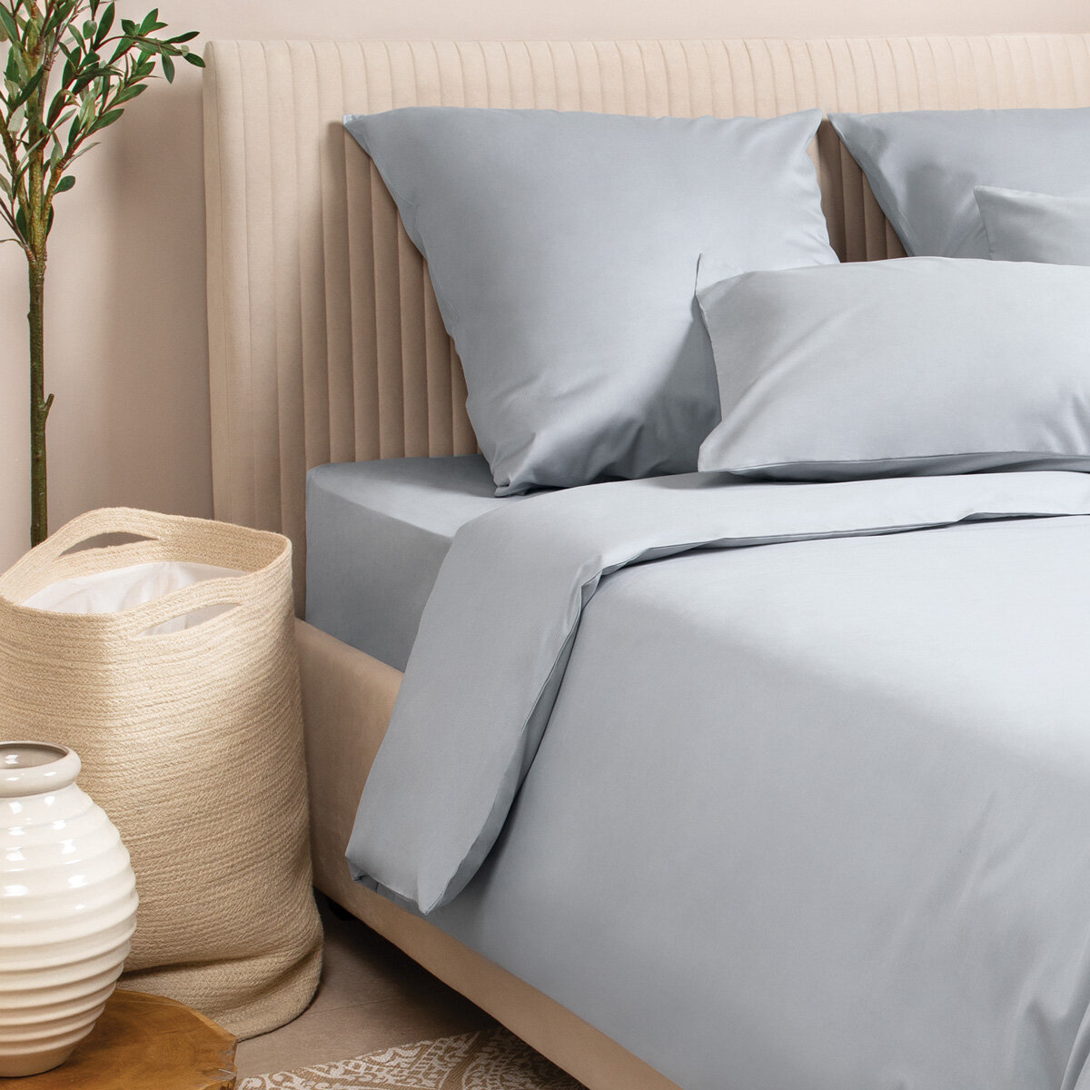 Наволочки 70х70 см Моноспейс, комплект из 2х шт, однотонные (аналог икеа), Серо-голубой, 100% хлопок, сатин, Ecotex