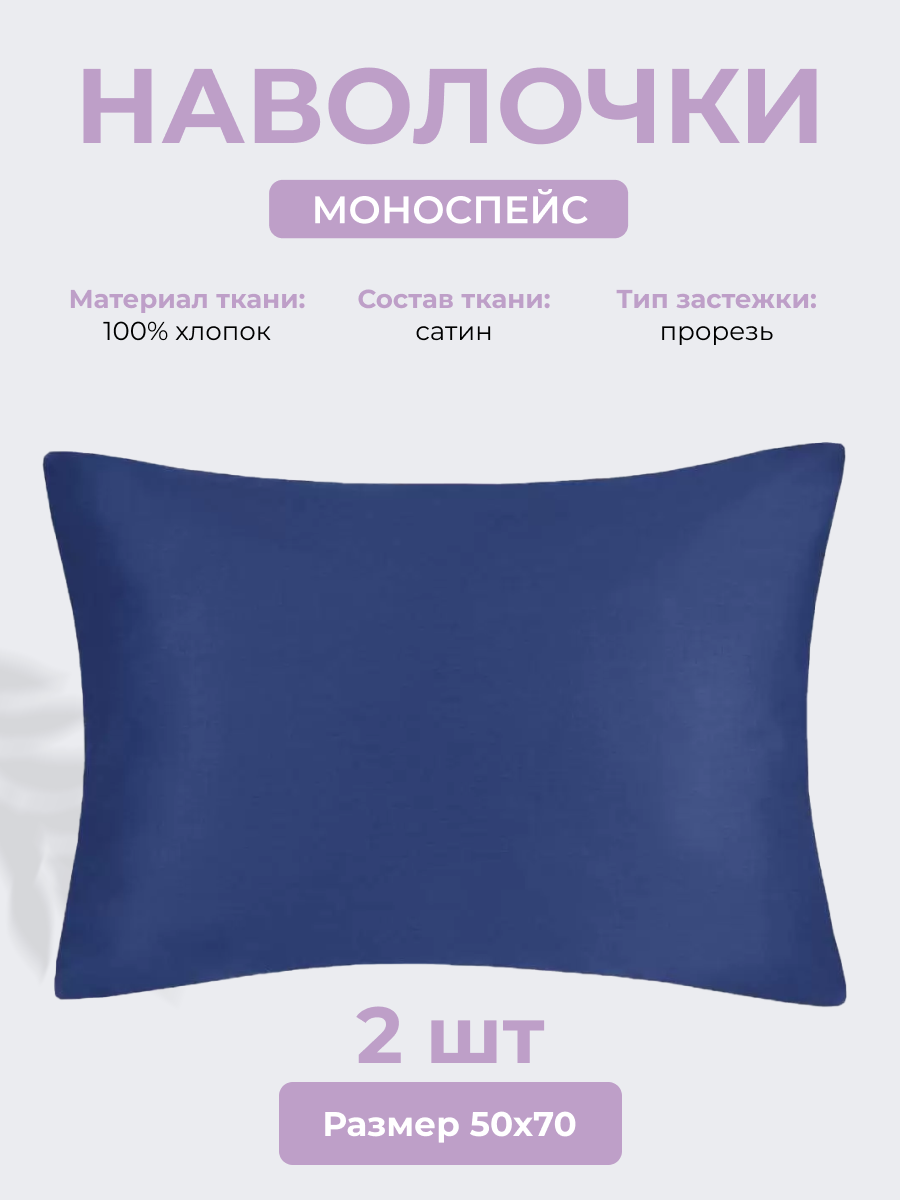 Наволочки 50х70 см Моноспейс, комплект из 2х шт, однотонные (аналог икеа), Синий, 100% хлопок, сатин, Ecotex