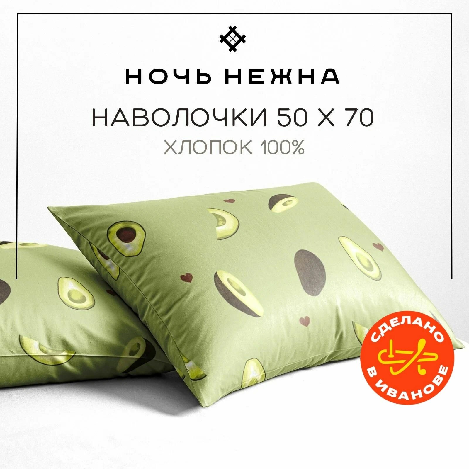 Наволочки 50х70 см, комплект из 2х шт, Ночь Нежна Авокадо, ткань бязь, 100% хлопок интересное:
