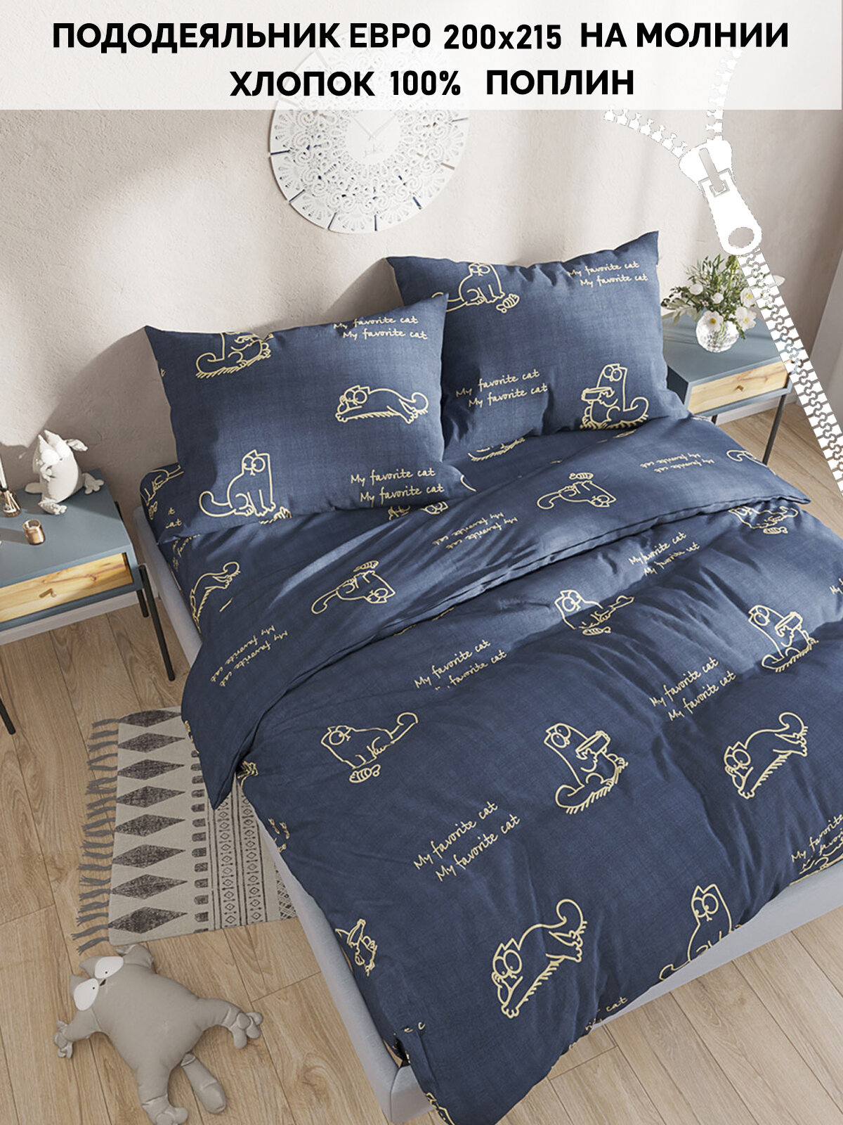 Пододеяльник Кот Коттон "Котики Грей" евро 200х215 см интересное: