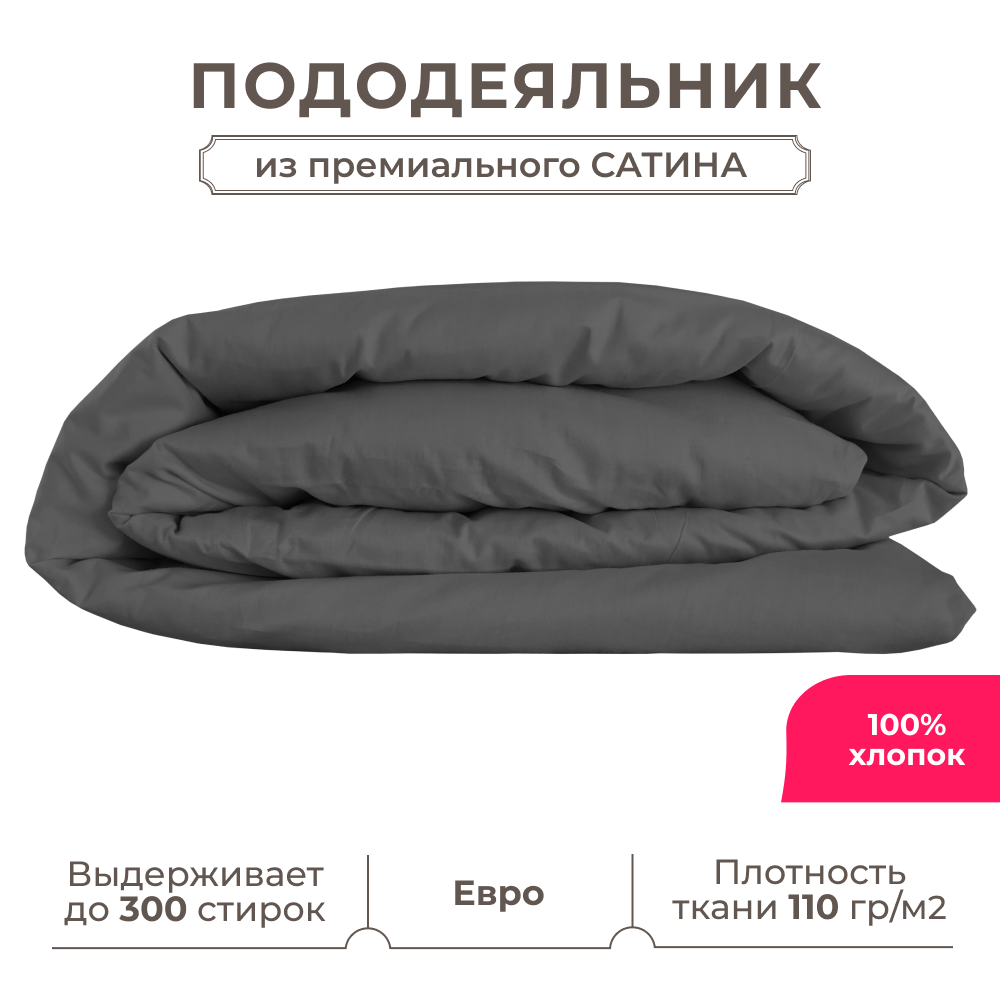 Купить Евро пододеяльник Lisleep 200x220, сатин (хлопок) с прорезью, графит