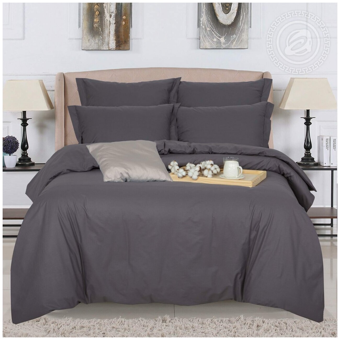 Пододеяльник евро 205х215 см поплин однотонный Графит