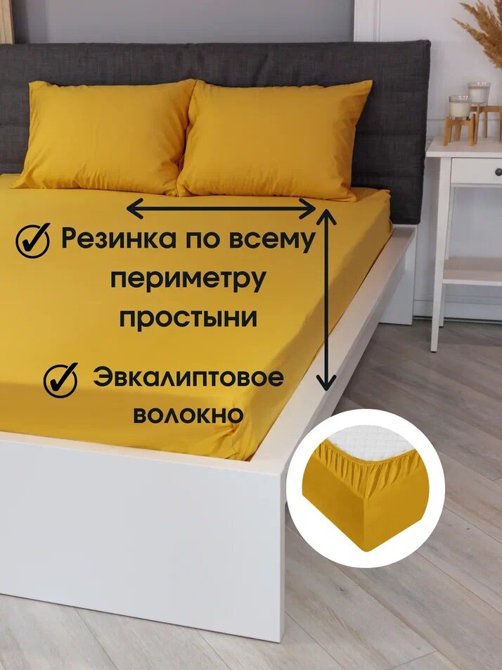 Простыня на резинке лиоцелл Желтый 160х200х26 см интересное: