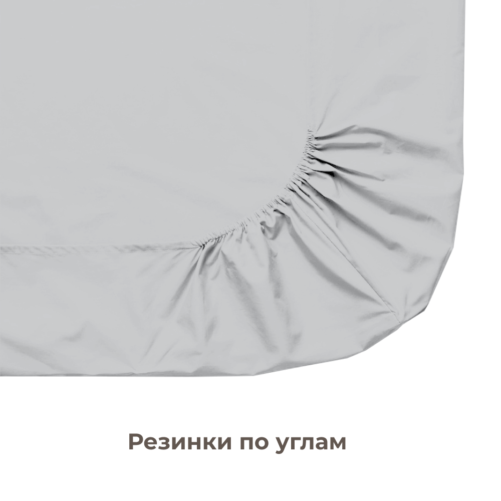 Простынь на резинке Lisleep 180х200, натяжная, сатин (100% хлопок), серый