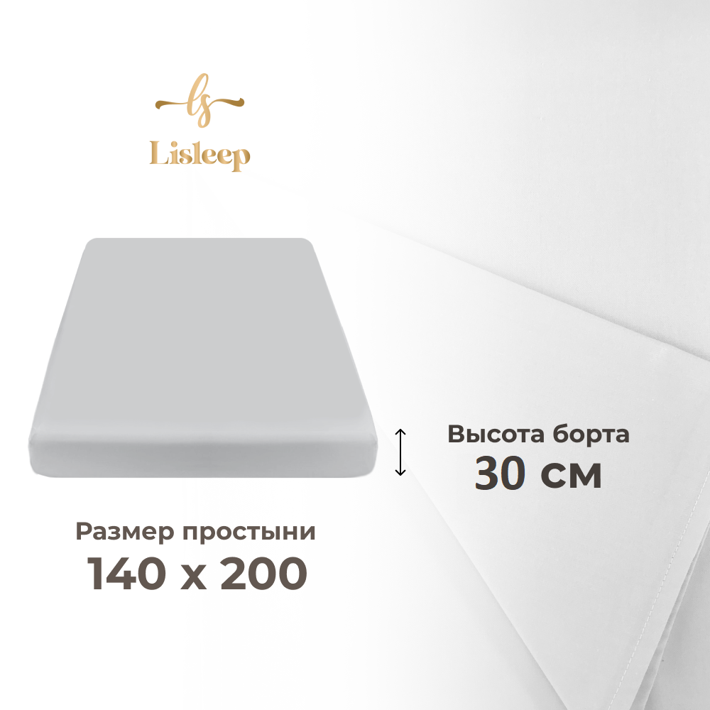 Простынь на резинке Lisleep 140х200, натяжная, сатин (100% хлопок), белый