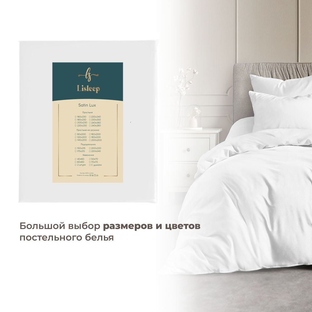 Простынь на резинке Lisleep 180х200, натяжная, сатин (100% хлопок), белый