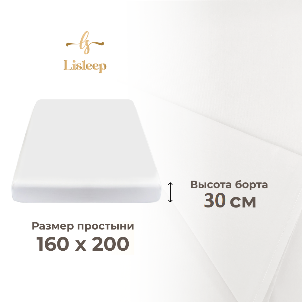 Купить Простынь на резинке Lisleep 160х200, натяжная, сатин (100% хлопок), белый