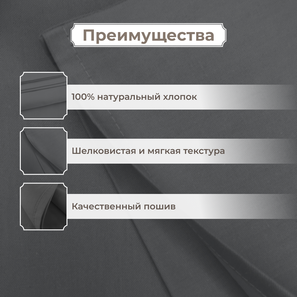 Простынь на резинке Lisleep 140х200, натяжная, сатин (100% хлопок), графит