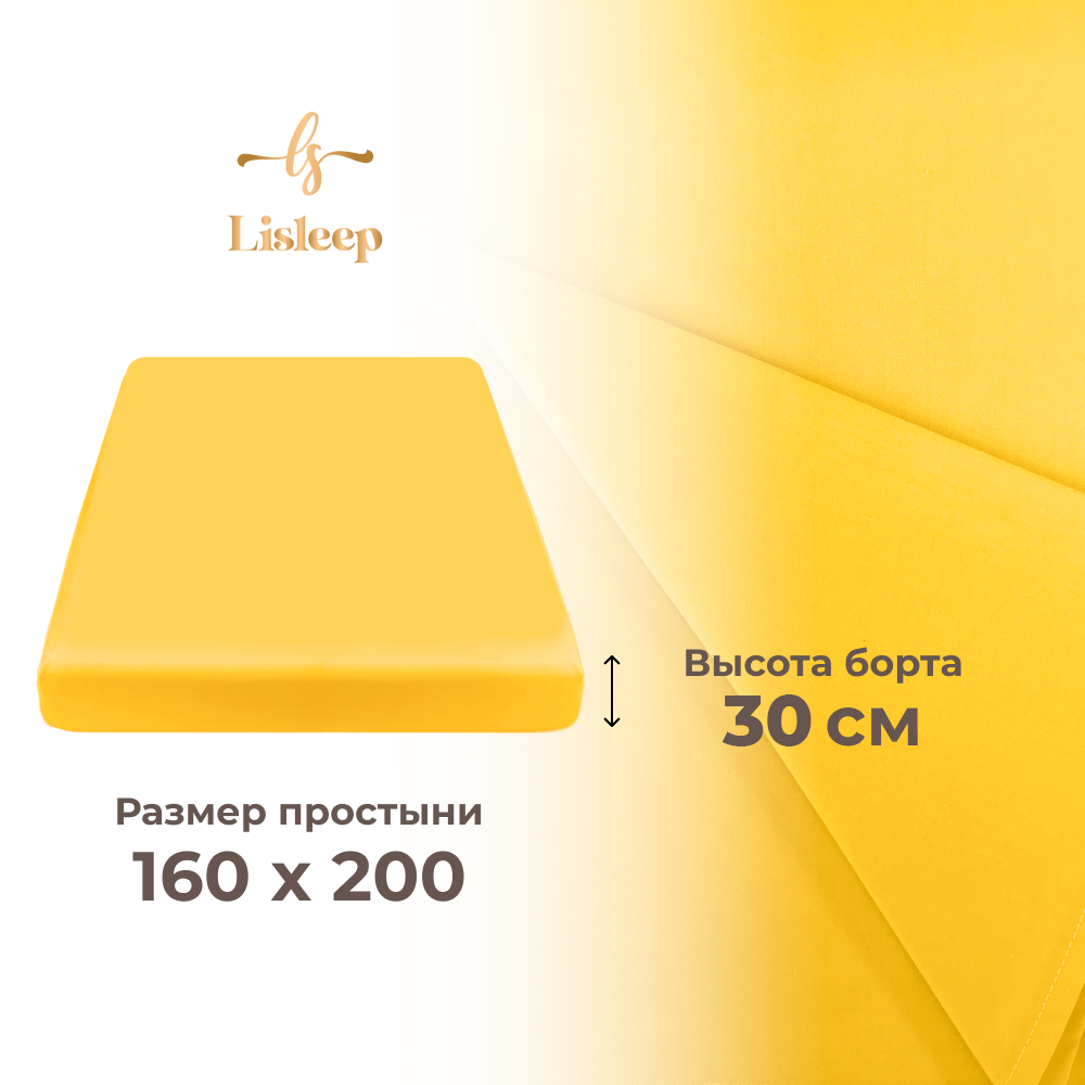 СохранитьПростынь на резинке Lisleep 160х200, натяжная, сатин (100% хлопок), желтый интересное: