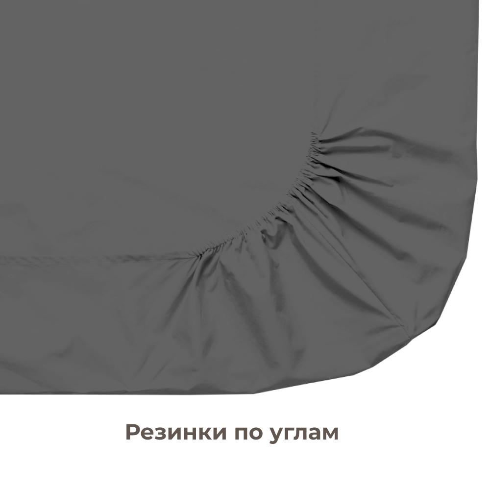 Простынь на резинке Lisleep 180х200, натяжная, сатин (100% хлопок), графит