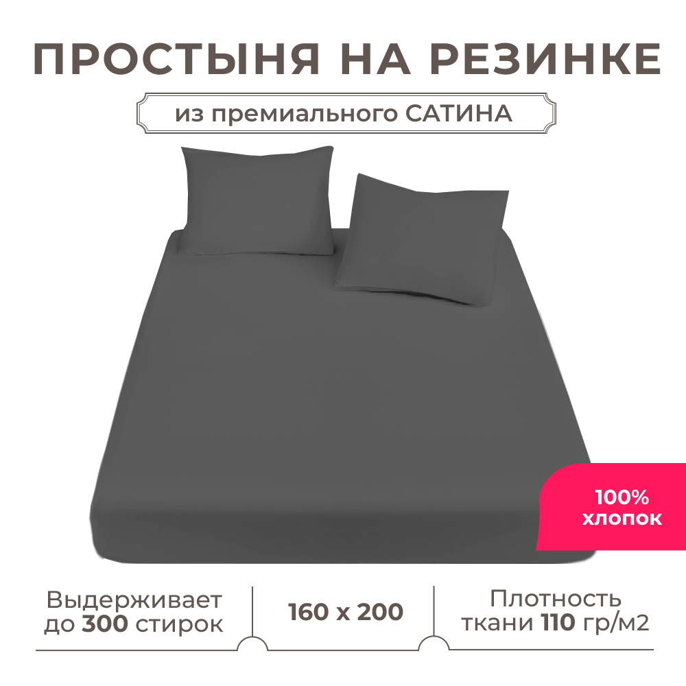 СохранитьПростынь на резинке Lisleep 160х200, натяжная, сатин (100% хлопок), графит интересное: