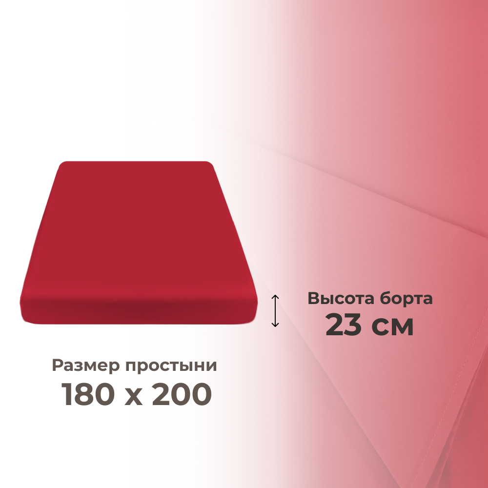 Купить Простынь на резинке Lisleep 180х200, натяжная, сатин (100% хлопок), красный