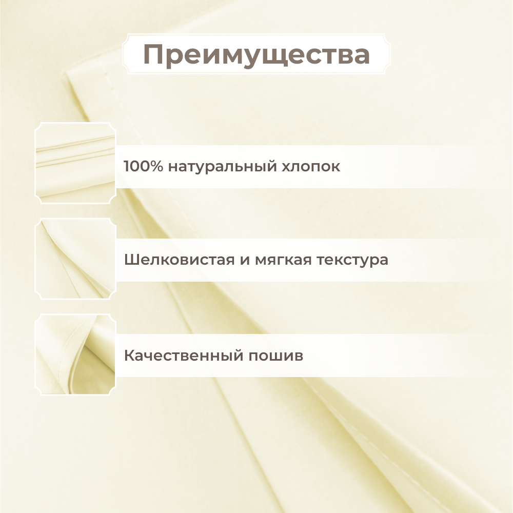 Простынь на резинке Lisleep 180х200, натяжная, сатин (100% хлопок), шампань