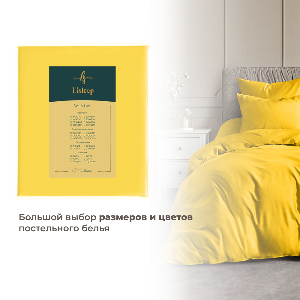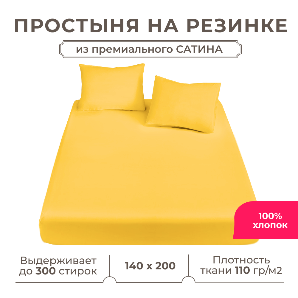 СохранитьПростынь на резинке Lisleep 140х200, натяжная, сатин (100% хлопок), желтый интересное: