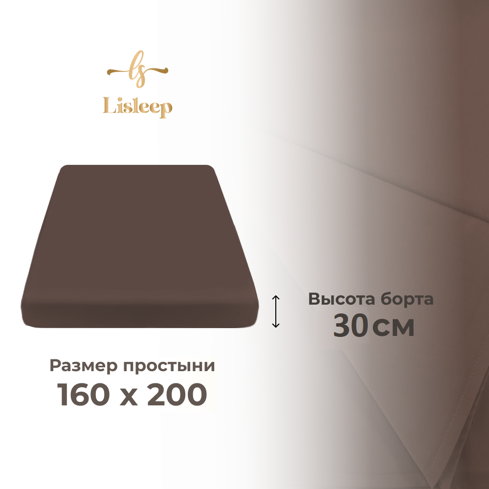 Простынь на резинке Lisleep 160х200, натяжная, сатин (100% хлопок), кофейный