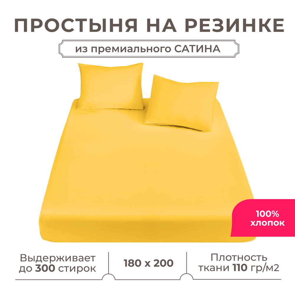СохранитьПростынь на резинке Lisleep 180х200, натяжная, сатин (100% хлопок), желтый интересное: