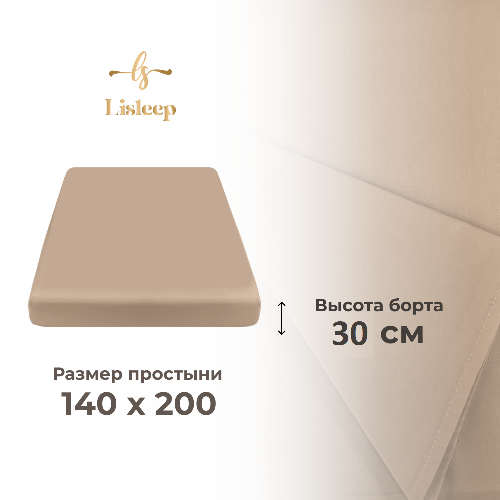 Простынь на резинке Lisleep 140х200, натяжная, сатин (100% хлопок), шампань