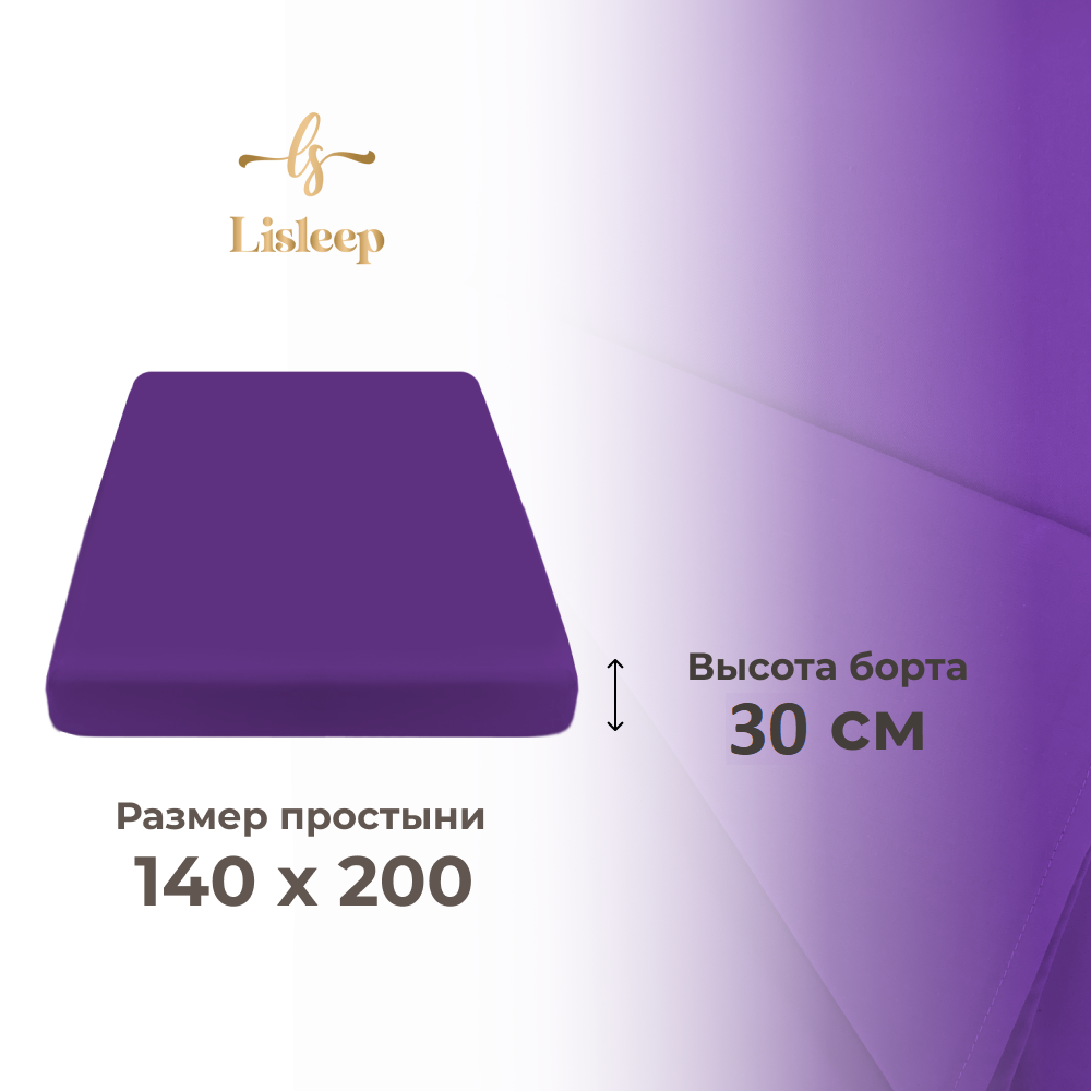 Купить Простынь на резинке Lisleep 140х200, натяжная, сатин (100% хлопок), баклажановый
