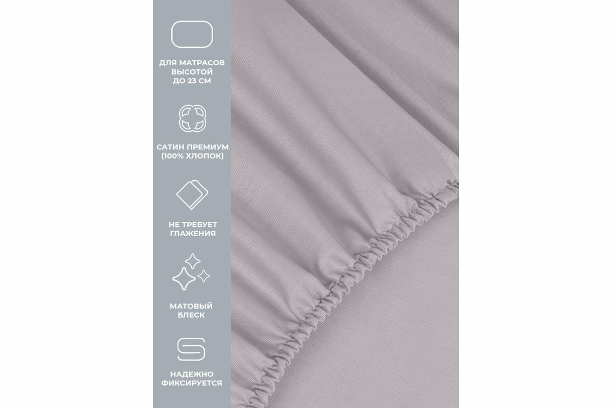 Простынь на резинке Ecotex "Моноспейс", сатин - 100% хлопок, 90х200х23 серый