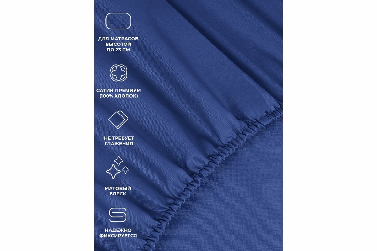 Простынь на резинке Ecotex "Моноспейс", сатин - 100% хлопок, 160х200х23 синий
