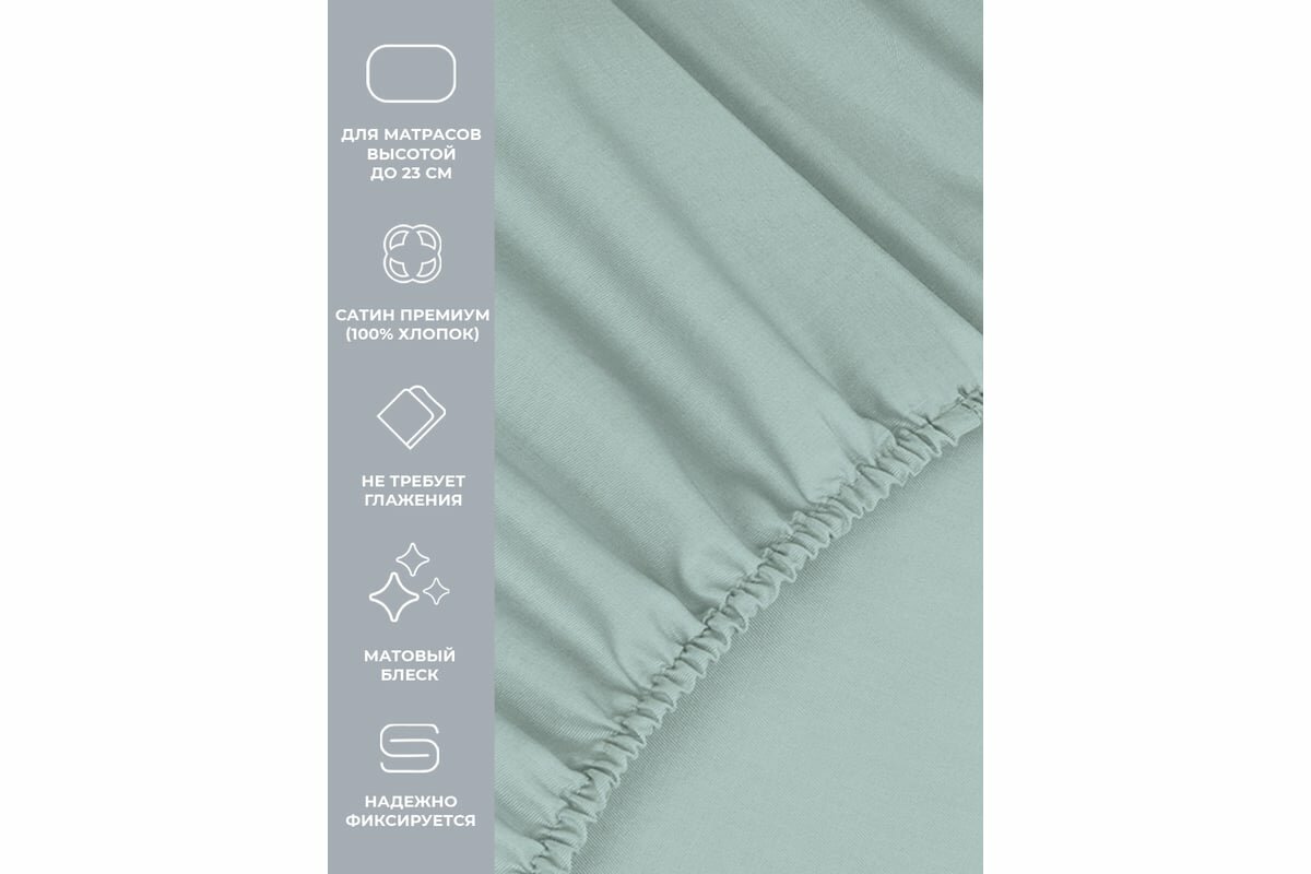 Простынь на резинке Ecotex "Моноспейс", сатин - 100% хлопок, 200х200х23, зеленый