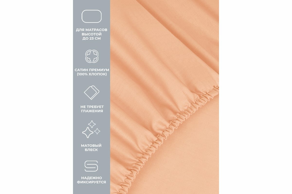 Купить Простынь на резинке Ecotex "Моноспейс", сатин - 100% хлопок, 160х200х23 персиковый