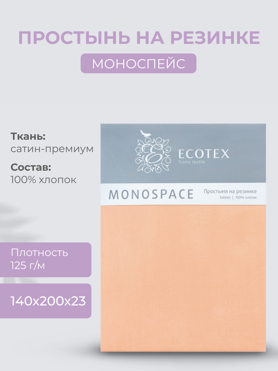 СохранитьПростынь на резинке Ecotex "Моноспейс", сатин - 100% хлопок, 140х200х23 персиковый интересное: