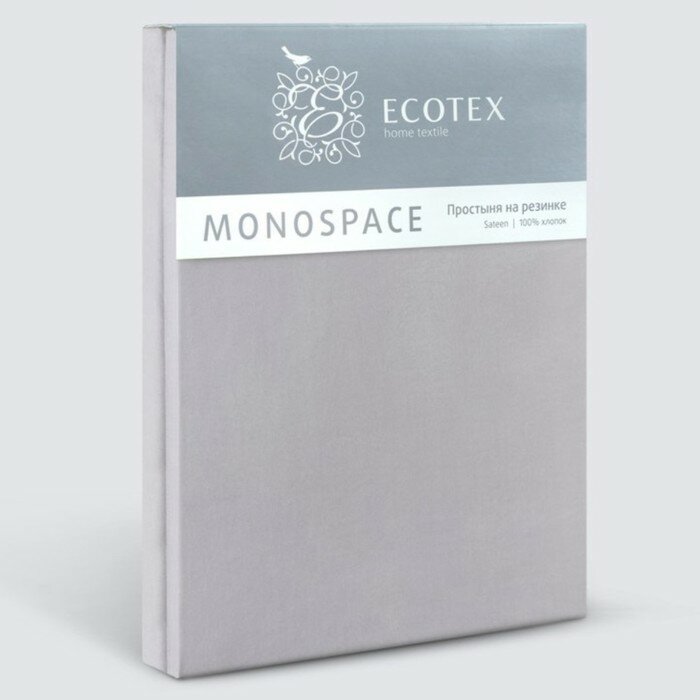 Простынь на резинке Ecotex "Моноспейс", сатин - 100% хлопок, 90х200х23 серый