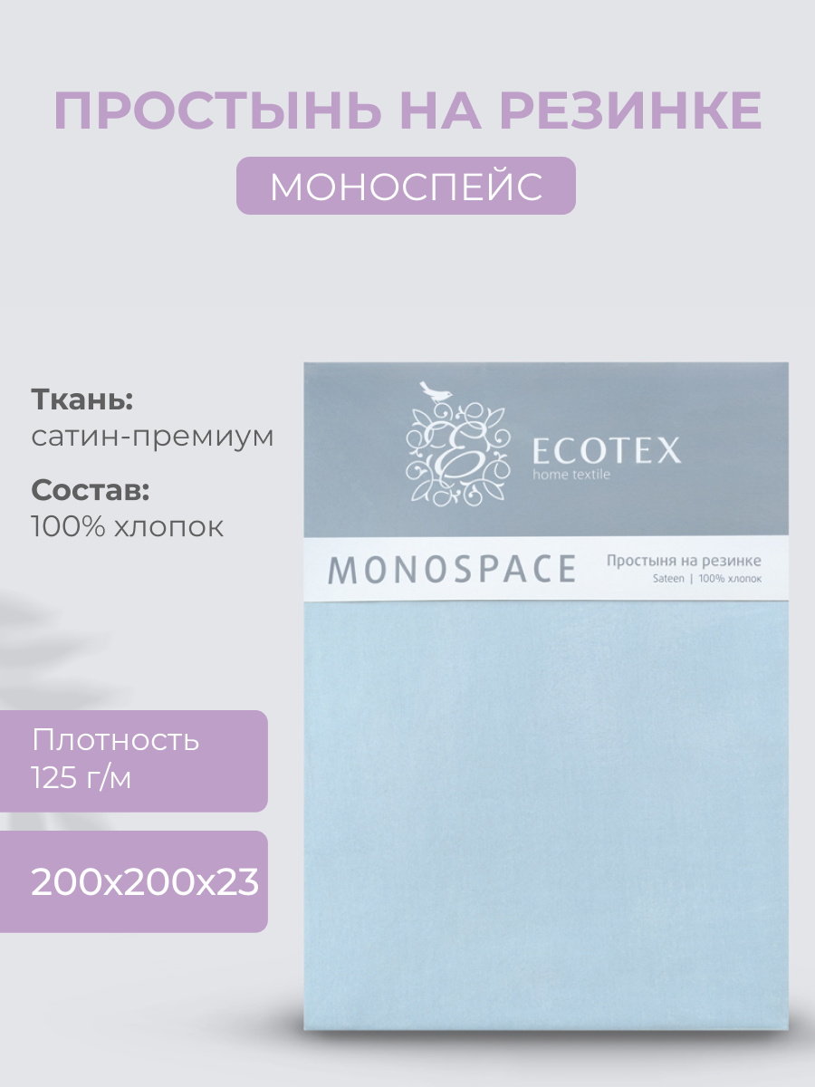 Купить Простынь на резинке Ecotex "Моноспейс", сатин - 100% хлопок, 200х200х23 голубой