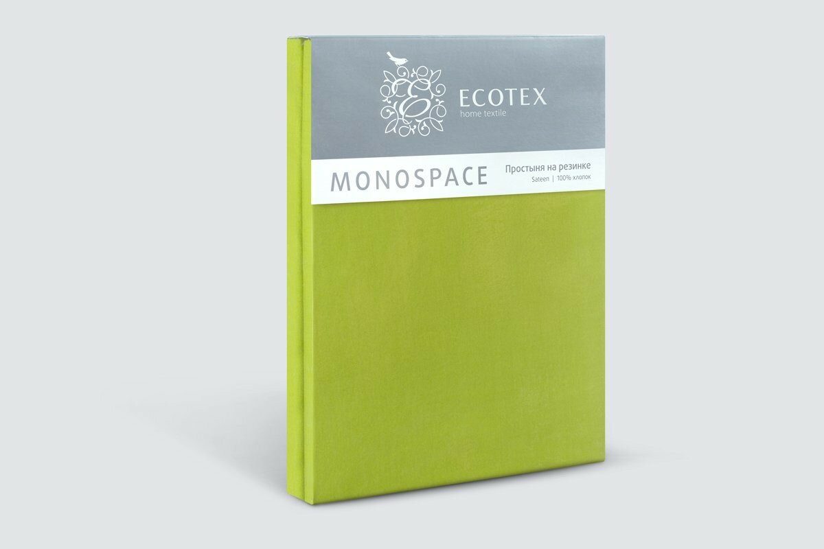 Простынь на резинке Ecotex "Моноспейс", сатин - 100% хлопок, 90х200х23, зеленый