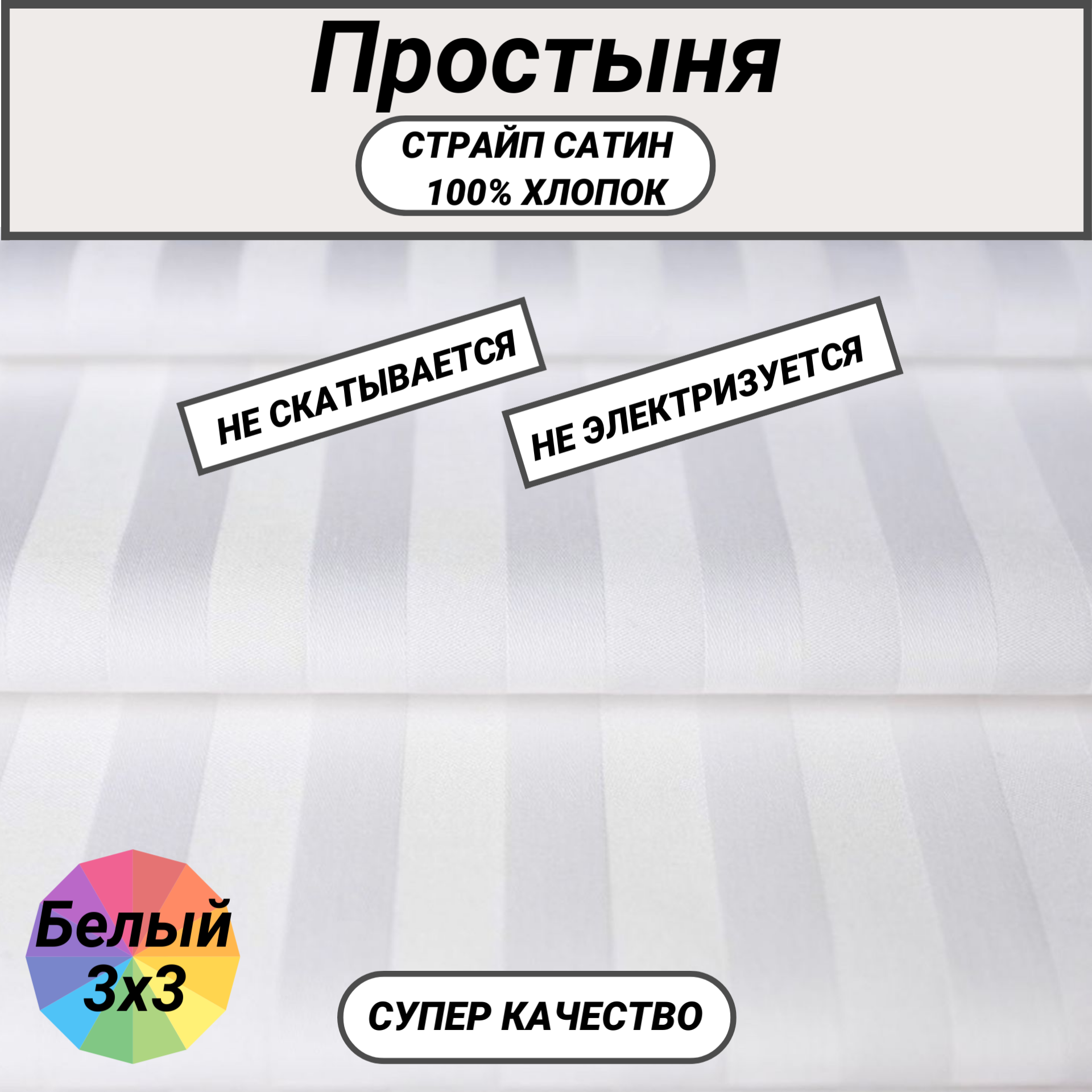 СохранитьПростыня евро (200х220) страйп сатин белый 3х3 СПАЛЕНКА78, хлопок 100% интересное: